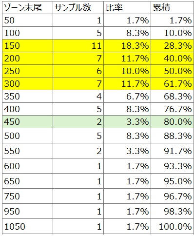 初当たりを取れる確率が累積80%を迎えるのは450Gとなっており、