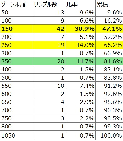 - 【着眼ポイント②】100~150G区間の初当たり占有比率:25%