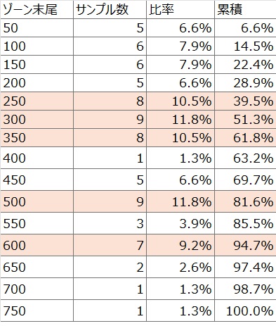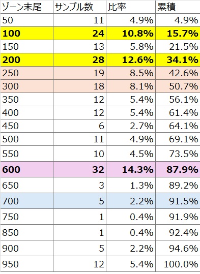 - 【着目ポイント②】550~600G区間の初当たり占有率(14.3%)