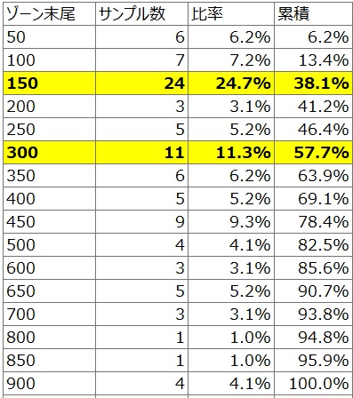 - 【着目ポイント②】250~300Gゾーンの初当たり割合が約11%(11.3%)